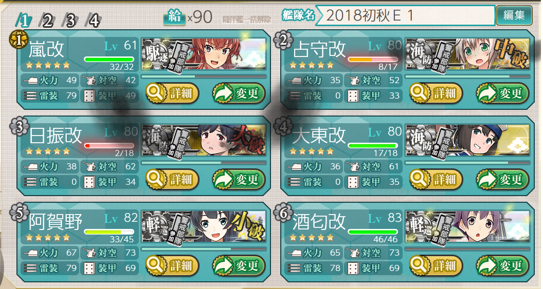 戦力ゲージもこのままで、と思いましたが航巡に水戦を積んでも制空権がとれなくて厳しいので少しだけ変えました。