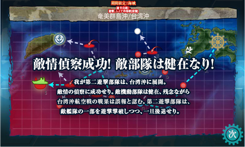 試行錯誤とWiki情報を見てできる限り安定した編成と決戦支援+基地航空隊を繰り出すも、どうしてもボスのゲージ破壊まではあと一歩というところ。