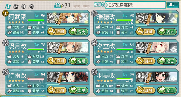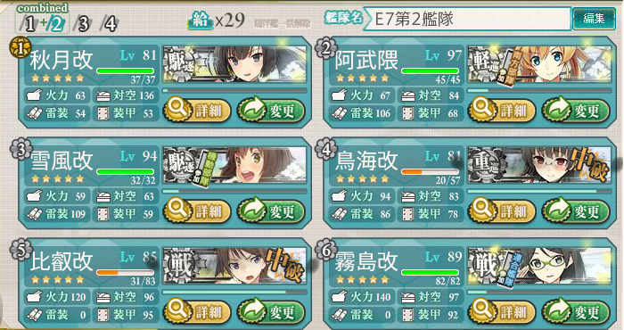 丙でもボスマス随伴は陸上型が多くて、ボスに攻撃が集中しないこともありましたが、なんとかクリアしました。
