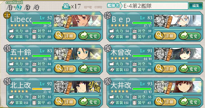 第2艦隊の軽巡・駆逐は完全に対潜装備一本、雷巡の開幕前雷撃でかなり梅雨払いできるのが楽でした。
