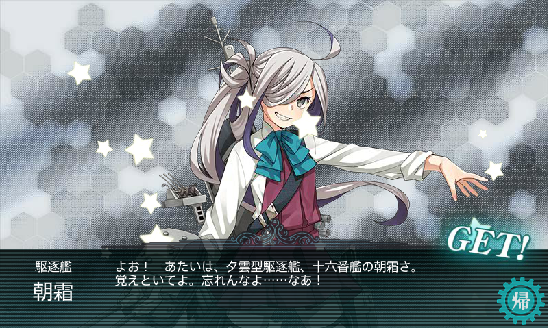 で、E-2ボスクリアで、その礼号組の最後の一人、朝霜をゲット。