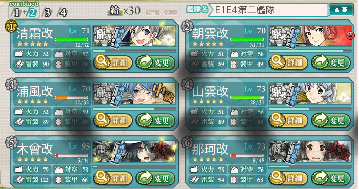 E4と共通のようですので、本当はもう少しレベル高めの編成が良いのかもしれませんが…