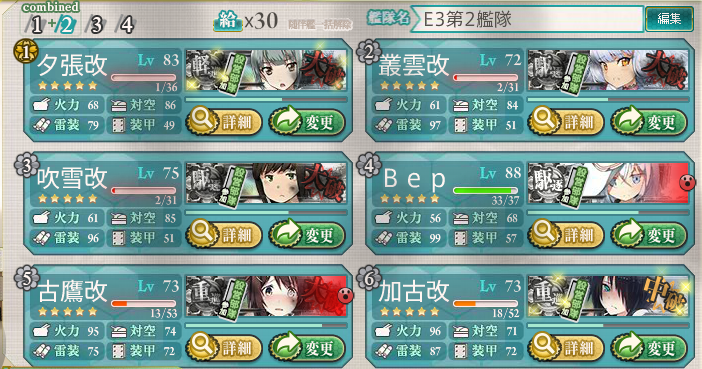 ちまちまとやってましたが、なんとかE3(甲)もクリアしました。